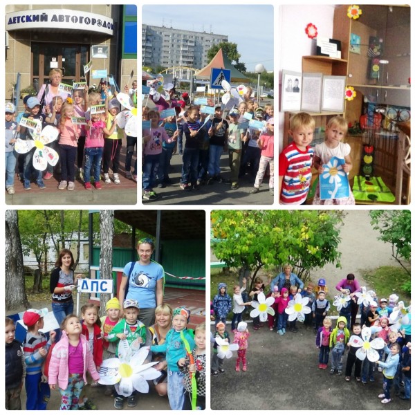 Участие во Всероссийской детской эстафете "Дорога - символ жизни!" (интерактив с ромашкой, экскурсия в автогородок, выставка в мини-музее к 80-летию Госавтоинспекции, оформление мини-автогородка и др.)